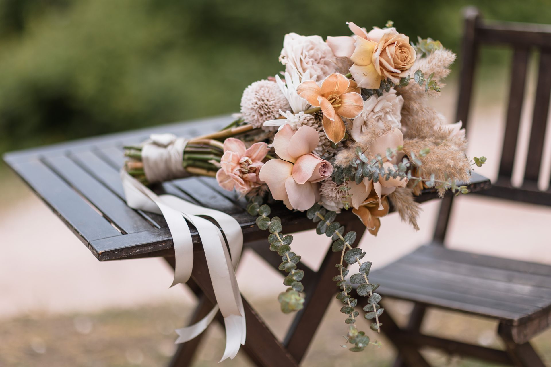 Kies voor de unieke textuur en lange houdbaarheid van droogbloemen, ideaal voor een bohemian, vintage of eclectische bruiloft.